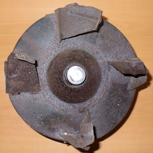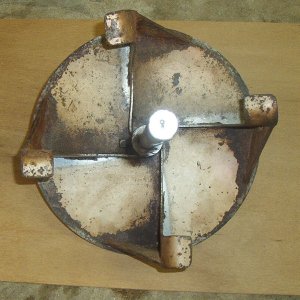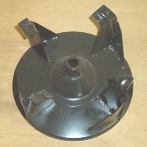 The impeller pictured above has worked long and hard or seen some debris. The blades have been bent backward. You can also see where the the back plate has begun to buckle inward down near the bottom of the picture.
