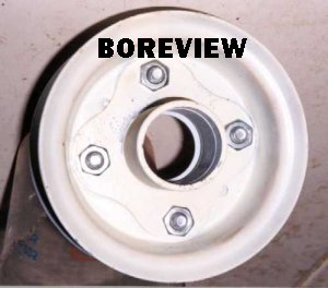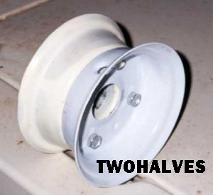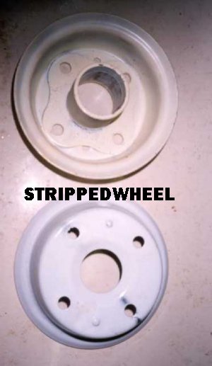 Here are 3 pictures of the new wheel. One with the bolts out and the bearings removed from the rear half and two views of the stripped assembled wheel. (boreview.jpg, strippedwheel.jpg, twohalves.jpg)
