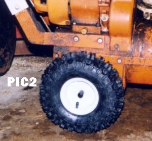 Hi Pete, It's been a while since I modified the wheels and tires on my old 5HP. Now that we have had a few snowfalls, I just wanted you to know it works great, no problems. The very slight difference in height between the old semipneumatic tires with chains and the new snow hog tires have not changed it's ability to cut clean down to the pavement, and it is obviously way smoother running without the chains now. Traction is not as quite as good, but very adequate. I am very satisfied with the job and wanted you to have this final update.